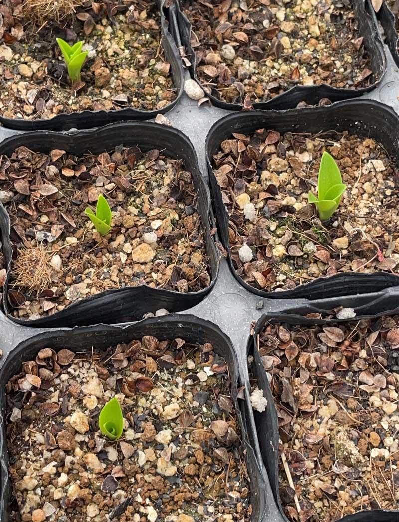 そんな中、ようやくマドンナリリーが土の中から顔を出し始めた。夏前に徐々に葉が枯れていくのをみると、毎年のように心細く感じる。大きな株は心配する必要はないが、小さな苗は無事夏を越してくれるだろうか毎年やきもきする。