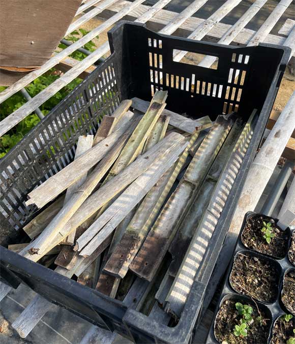 苗もあるため、いっぺんに全部はできないので、苗の移動→解体→材料の収穫→加工、組み立て→苗の移動
