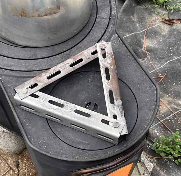 直接強力な火にかかるので、やわな鍋置きのようなものだと溶けそうだから頑丈なものでないと用をなさないだろう。もちろん、ホームセンターやネットはチェックしたが、家庭用コンロの五徳など、新品は案外高い。鉄筋を曲げて溶接して・・・というアイディアも思い浮かんだ。一瞬作ってみたいとも思ったが、冷静になって考えるとそこまでしてするものではないという判断に落ち着いた。