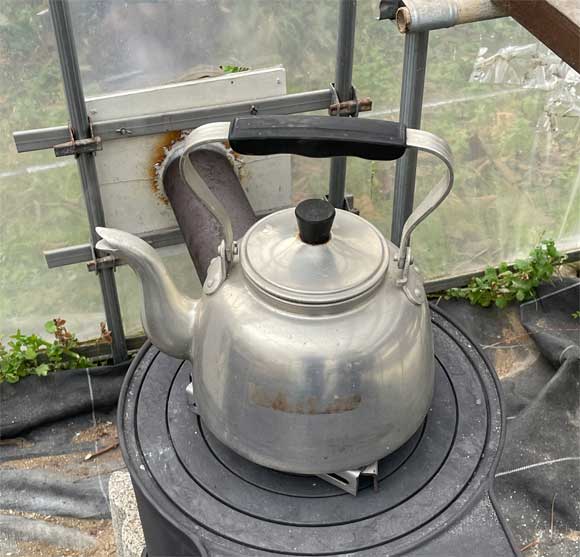 豪快に湯気を出すやかんの下に挟むと、湯気が穏やかになり、とてもいい感じ。と言って冷えるわけでもなく、願っていた通りの結果となった。